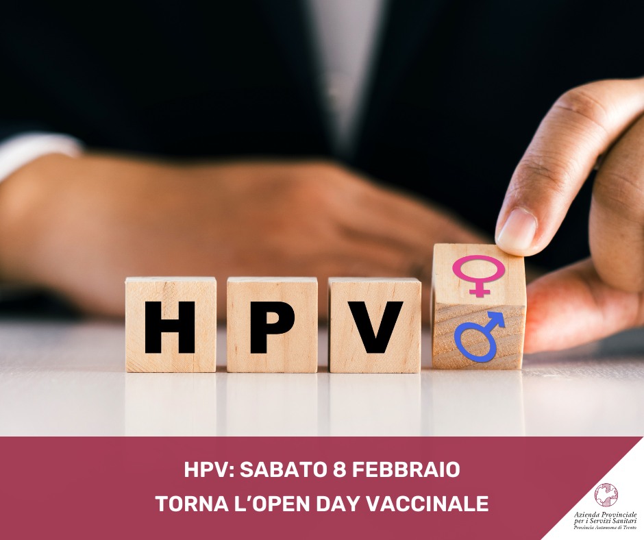 "Open day vaccinale HPV _ Vaccinazione gratuita contro il papilloma virus umano per donne fino ai 40 anni e uomini fino ai 30 anni" presso tutti i centri vaccinali del Trentino.